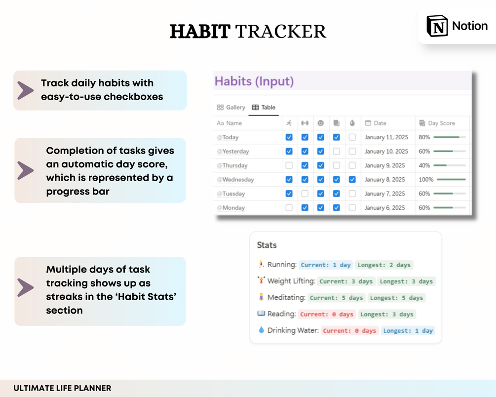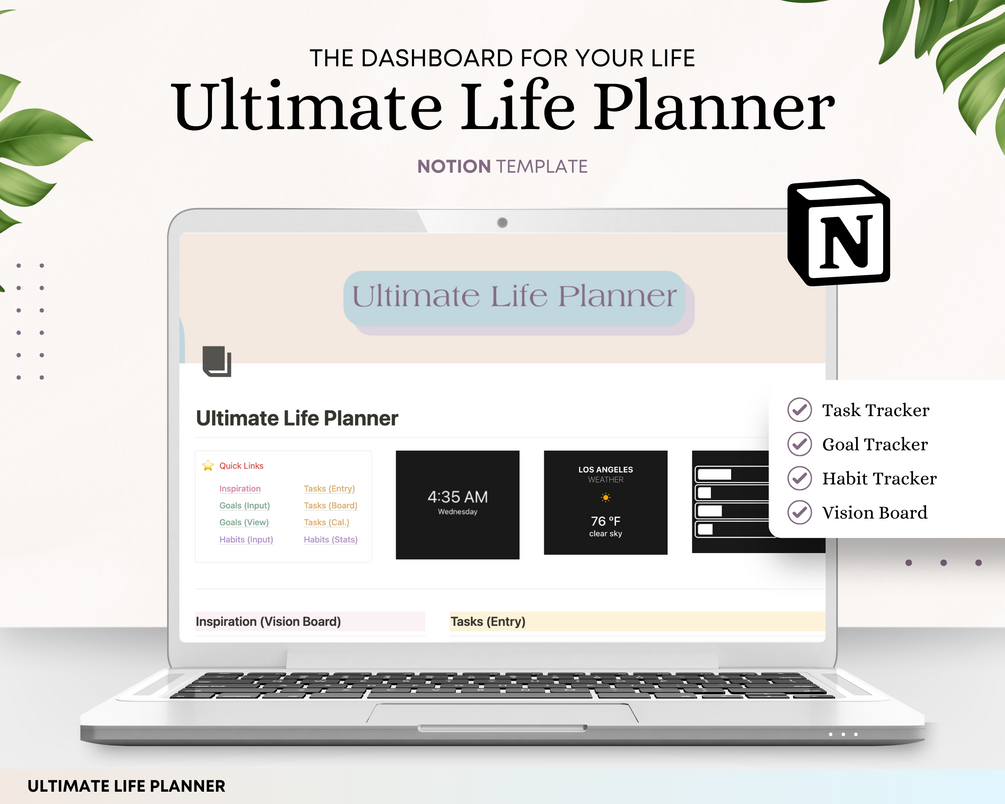 Your one-page life planner that tracks tasks, habits, goals, and dreams!